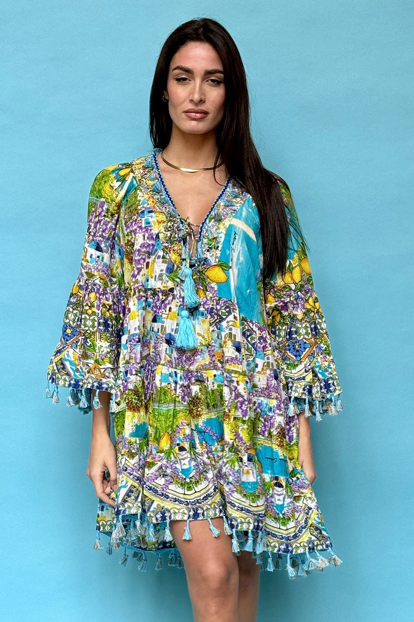 Short dress with V-neck by Antica Sartoria by Giacomo Cinque